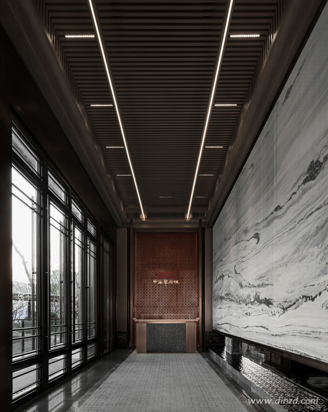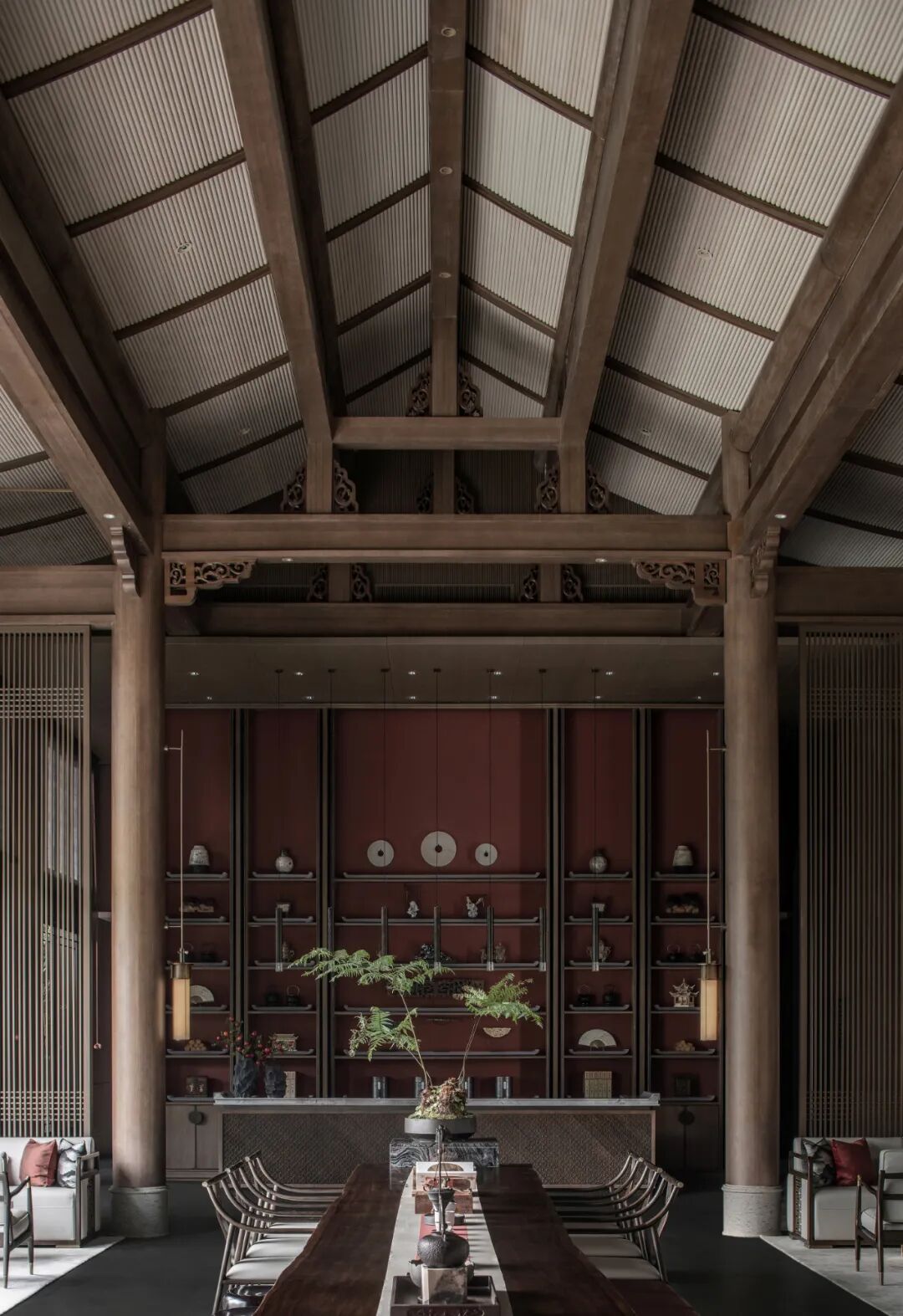 过厅现代建构主义空间中使新的艺术形式得以传承与融合,提供观者纯粹的空间美感,把空间与艺术结合,赋予空间灵魂;通过风景开阖、空间对比,引导对空间的感知、强化空间尺度对比;尊重自然的精神。营造“未山先麓 、移步易景”的空间意境。