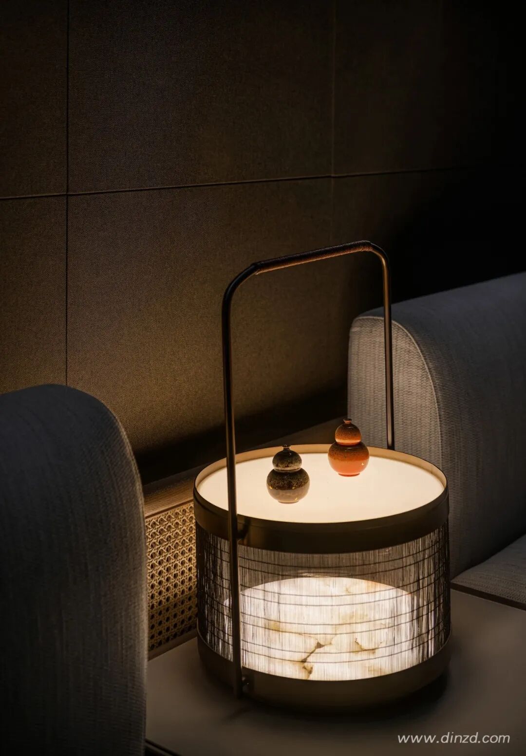 原木的自然肌理、还有那远看形似古灯的造型,更有了些天地间极净澄澈的自然意味。