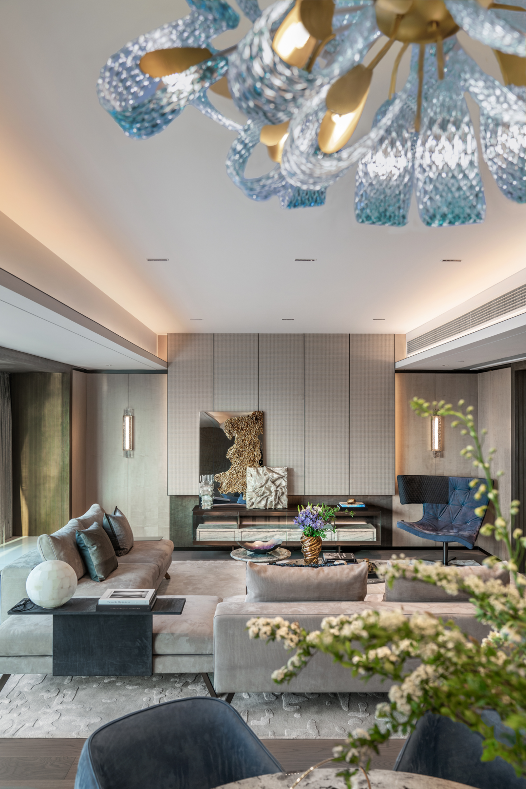 看山似山,看水似水,唯情至归处,皆源于自然之美,回归于庭,木饰面与鎏金色金属奠定着雅致生活的开始。软装陈设抒写着中式美学与艺术的交融,大理石面的与丝绒的碰撞带来仪式感与格调。