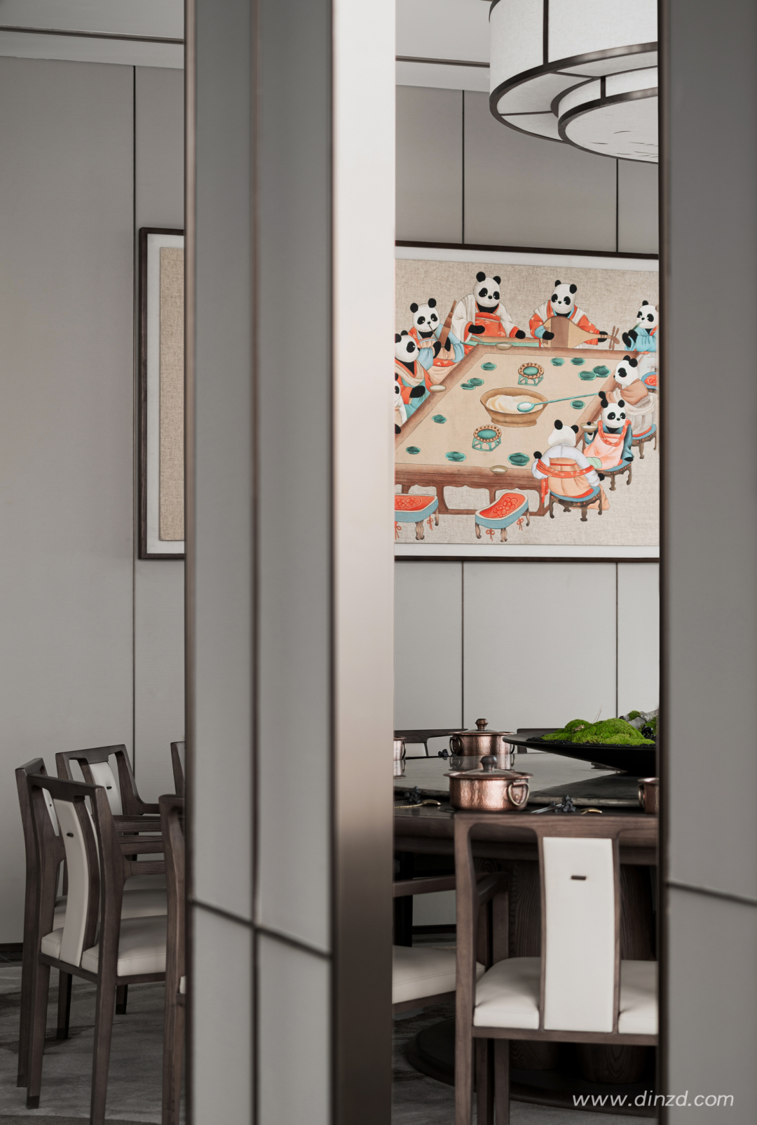驻足观物,看檐立燕,在“观物取象”的过程中感知出某种婉转的情思,于是空间中便有了那嵌在凹槽里形态各异的燕,用艺术造型的椅和艺术装置挂画,这些细部的配置都衬得空间活泼了许多。于是更能“入情”,衬映着袅娜的烟色,暮去的天光,在场域里渐渐蔓延出与三象论中所述的“境象”——即受众能产生精神共鸣的介质。