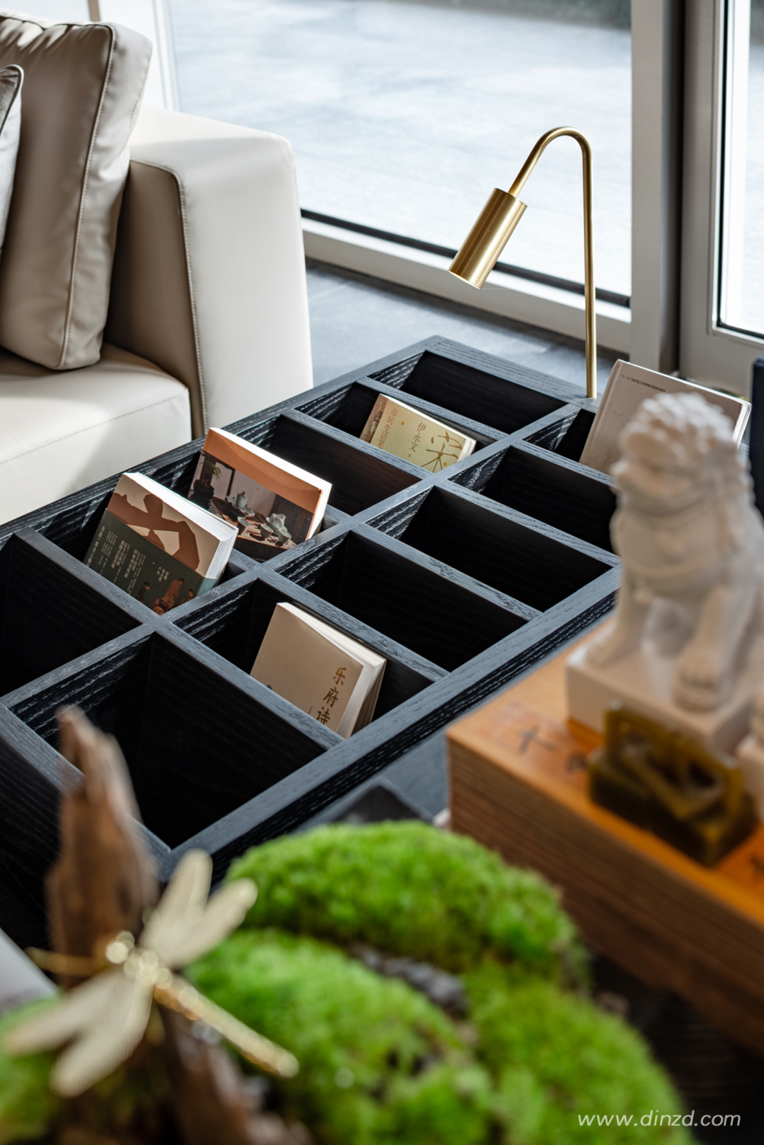 大面积落地玻璃窗,室外园林景观绿意盎然。以自然为底色,现代中式沙发,大理石茶几,水墨画靠枕和地毯相得益彰,搭配中式花艺和茶具,艺术质感跃然而来。
