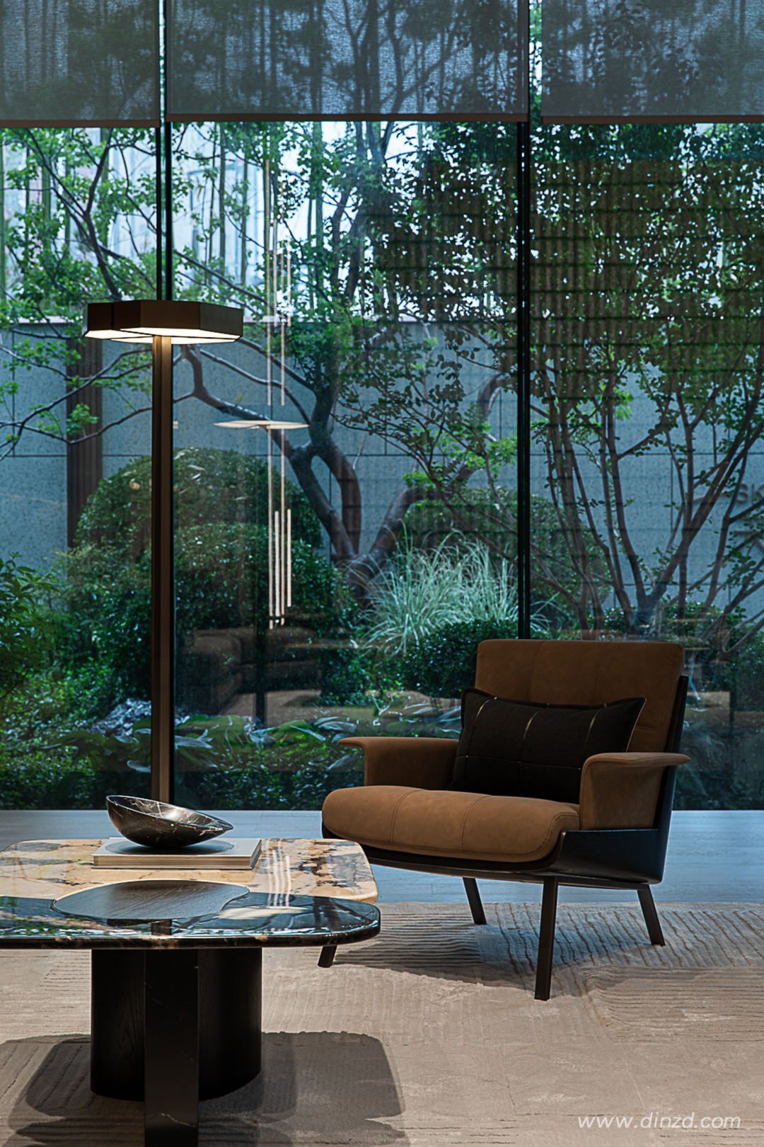 良好的视野景观让阳光在空间中嬉戏,不同材料仿造出自然材质,烘托雅致沉稳的格调气质。从艺术感知开始,以人文体验结束,空间中,漫长无尽的时间开始有迹可循。