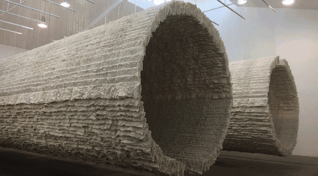 艺术家朱金石带来双个展《时间的船》与《拒绝河流》。《时间的船》用一万四千张宣纸,一千八百棵细竹,两千根七米绵线创作完成,以宣纸作为媒介唤起久远时光的记忆,沧桑、宁静又富有诗意。《拒绝河流》精选了朱金石具有代表性的“厚绘画”,作品具有向空间纵深的厚度,模糊了绘画与装置的界线。