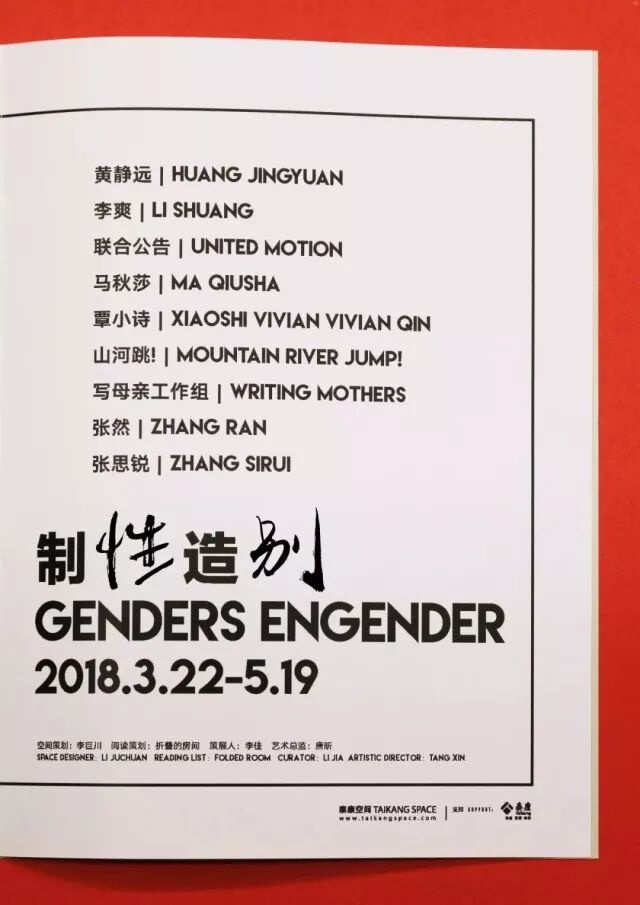 性别问题从来不是一个新的问题。《制性造别》邀请十一位/组艺术家和团体,针对性别(gender)相关议题发起讨论和展演。你可以在艺术小组山河跳!创作的《深渊》签占系统与装置求一支签,看看是否答复你心中所想,然而该系统并不基于任何信仰;写母亲工作组也首次实现了物理现场的展示,看看参与者和母亲的对话,是否也是你的日常;或取阅一份艺术行业性别平等状况匿名访谈的《联合公告》单页……整个展览关切的是发生在当下或对今天的社会性别差异状况产生影响的性别论述和实践,并尝试为这些多元的论述与实践建造展示平台、对话的空间,甚至是生产的车间。