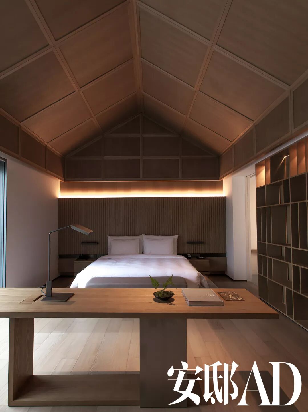 ▲ 花园别墅的卧室保留了江南传统的坡屋顶造型,但更加简净的设计又颇具现代感。