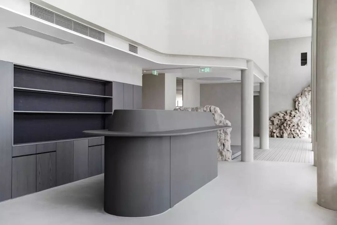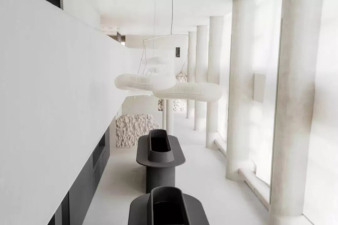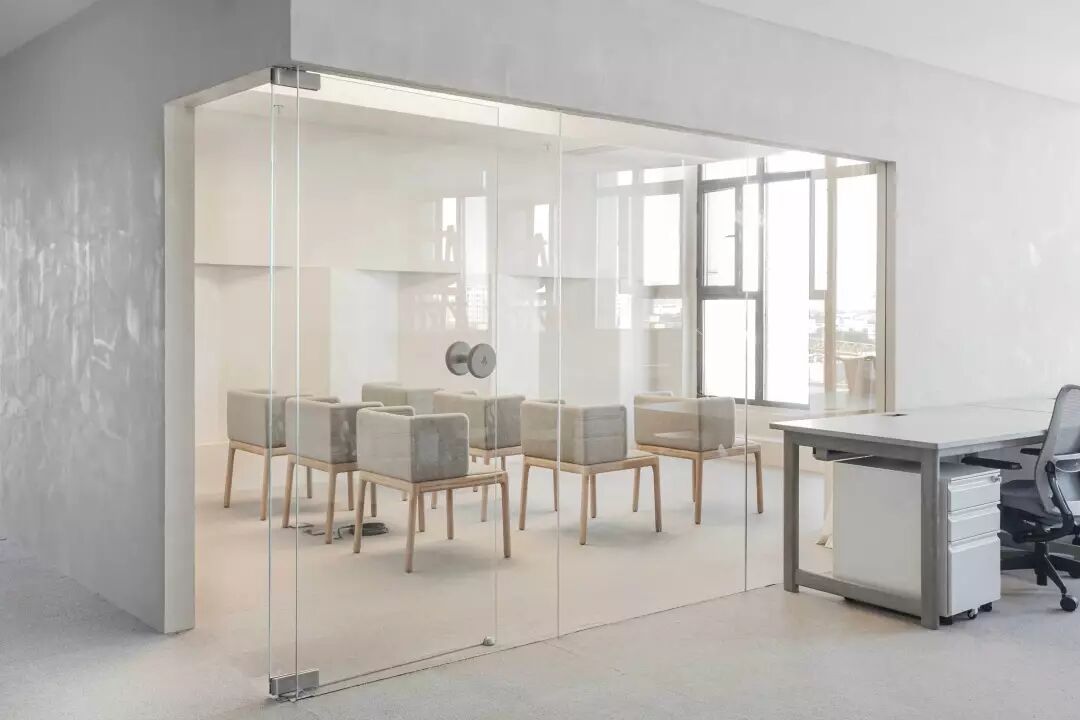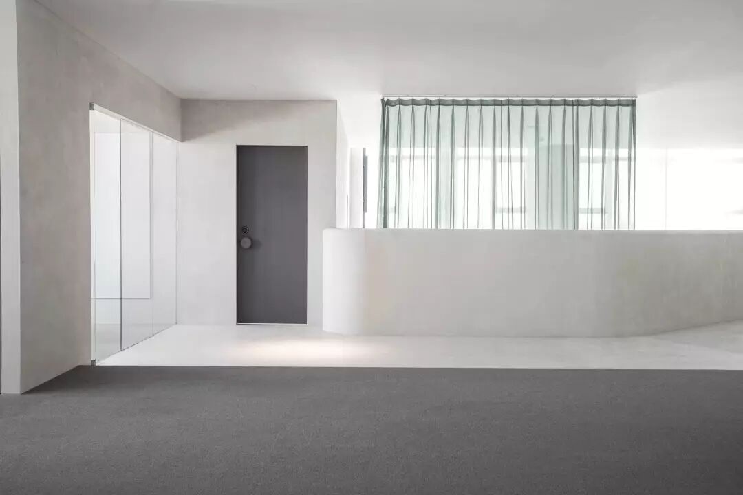 一层,颜色清浅舒适的回收型石材铺设满墙,数米高的南向落地窗让阳光可以眷顾到每个角落,伴着光影开始一天的工作,心情绝对美美哒。
