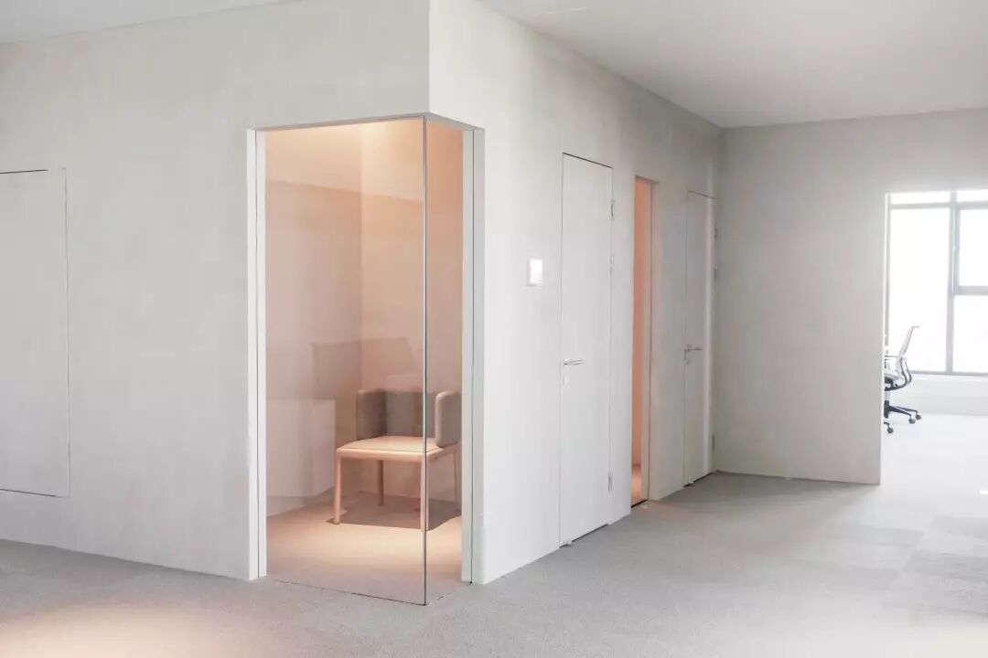 设计初期考虑到每个部门对办公环境的不同需求,便有了如媒体部编辑需安静协作的空间,数个满足一人工作的小屋窗明几净、隔音舒心,稀释了焦虑;还有数个小会议间,隔音好、适当的玻璃墙又增加开放性;甚至在入口处,还有一间专门用于面试新人的房间。