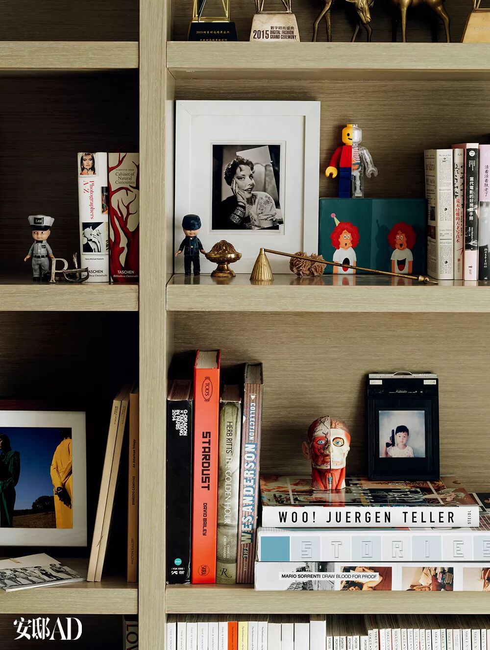 作为一名时装摄影师,当合作的杂志编辑来找张悦聊想法时,这张大长桌便是他的工作台,从身后的陈列架上取参考书本只需伸伸手,摊开来就能一起选。