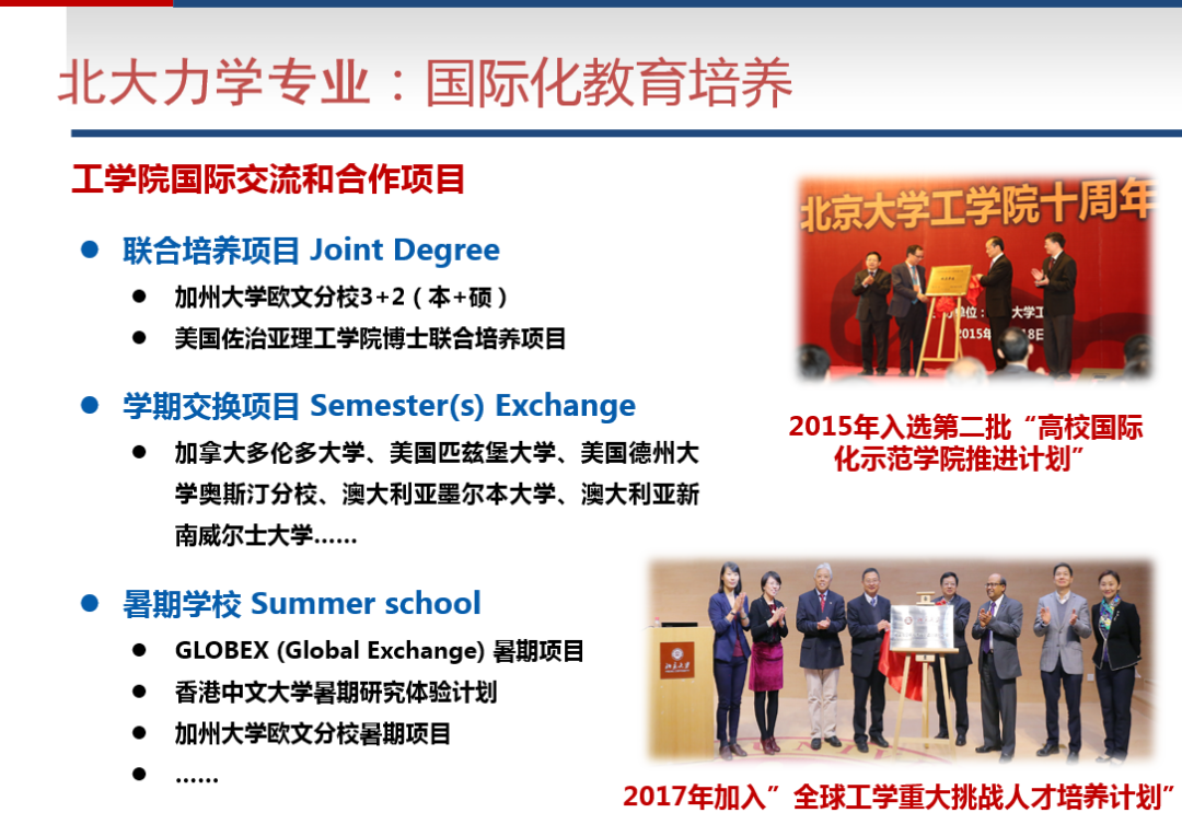(1)继承注重数理基础的优良传统,培养学生的创新能力。学院能为学生提供理论基础扎实的数学力学类课程和良好的科研训练指导;同时注重双语教学的质量,加强计算机和实验方面的训练,使学生掌握前沿的计算机软、硬件技术和现代实验技术;