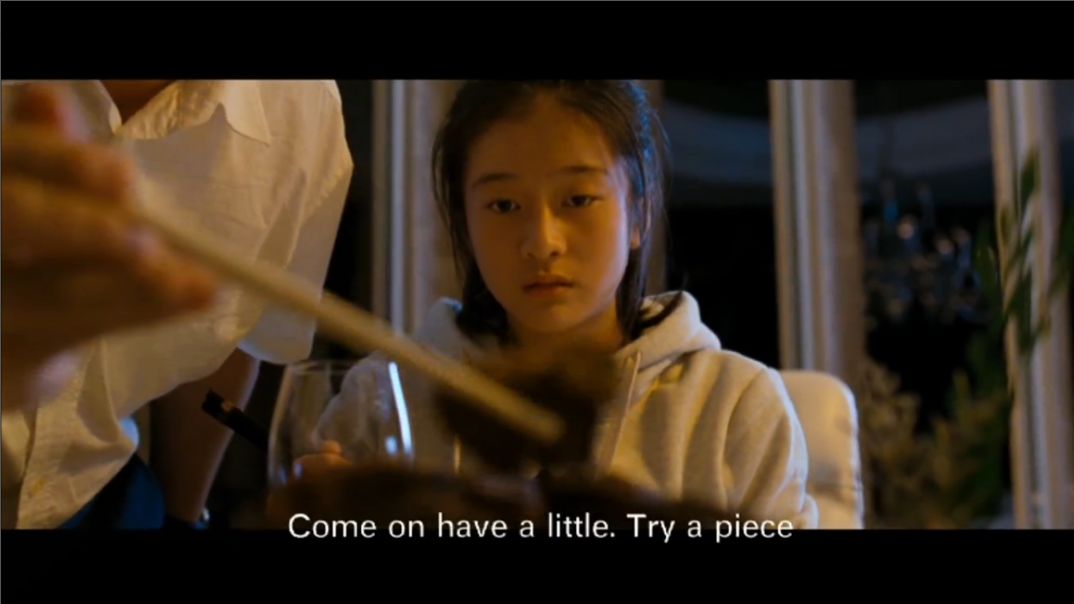 在饭局上,为了不让爸爸难堪,她忍痛吃狗肉。