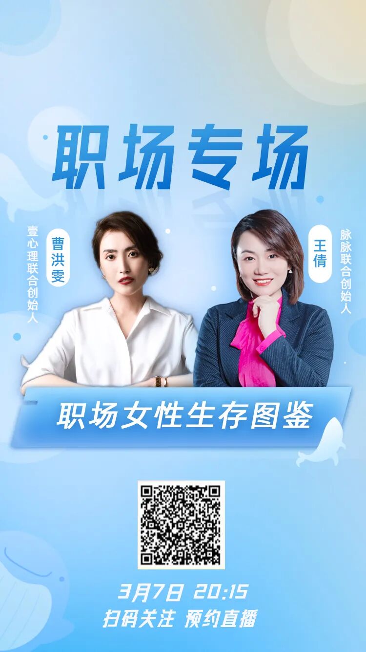 3月7号壹心理直播间邀请到壹心理联合创始人曹洪雯和脉脉联合创始人王倩,和大家聊聊职场那些事,带你走出职场困惑。(点击按钮即可预约↓)