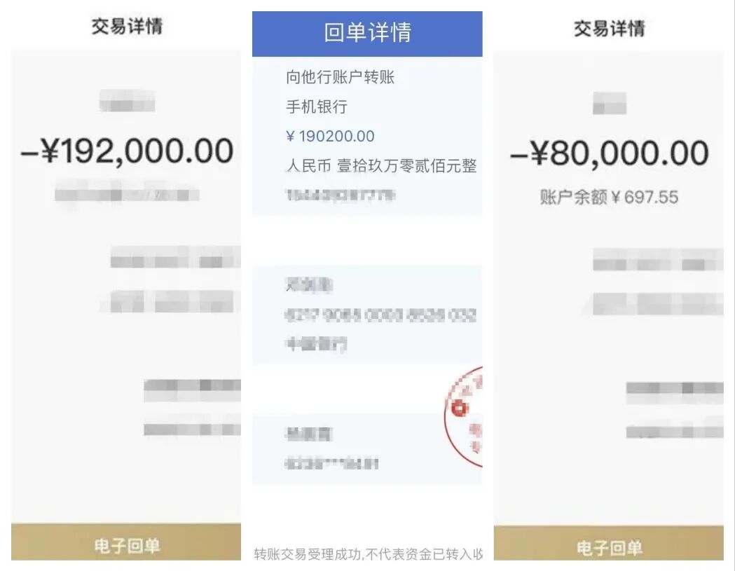 分3笔转入“安全账户”