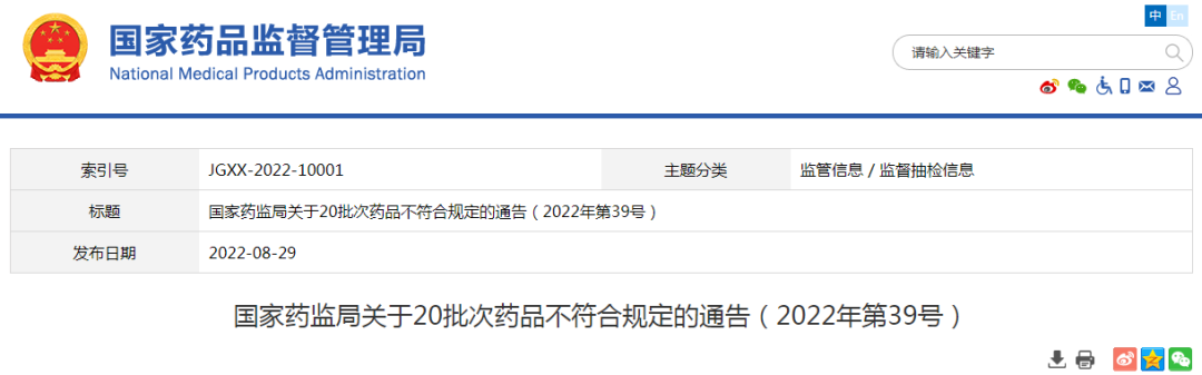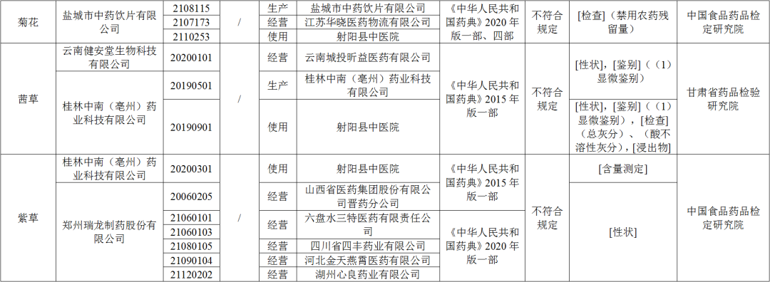 经中国食品药品检定研究院等6家药品检验机构检验,标示为郑州瑞龙制药股份有限公司等9家企业生产的紫草等20批次药品不符合规定。