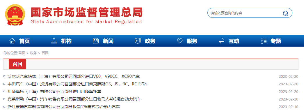 车辆召回信息