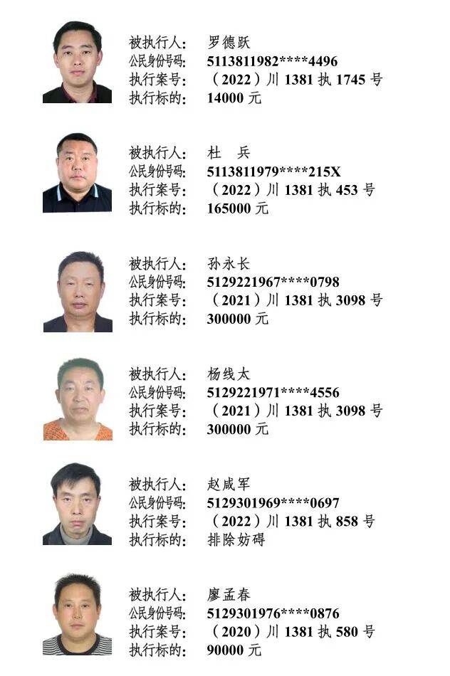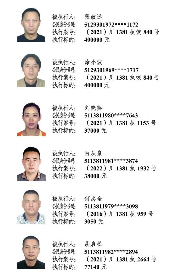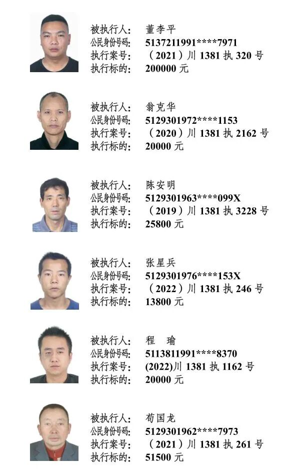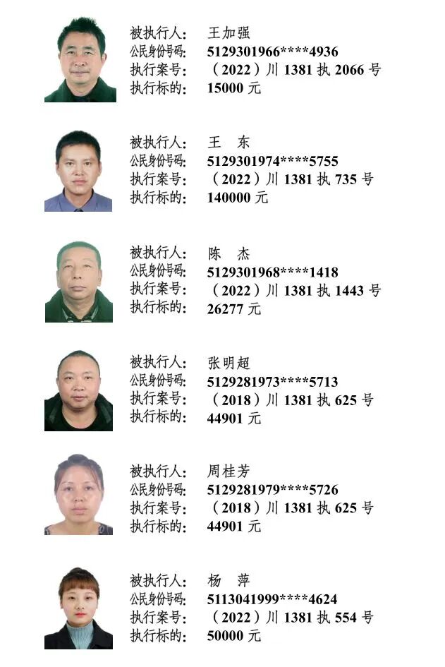 为进一步加大对失信被执行人的信用惩戒力度及限制其消费行为,推动社会信用机制建设,保护申请人合法权益,维护司法权威,促使被执行人自觉履行生效法律文书确定的义务,阆中法院现对下列失信被执行人进行集体曝光。