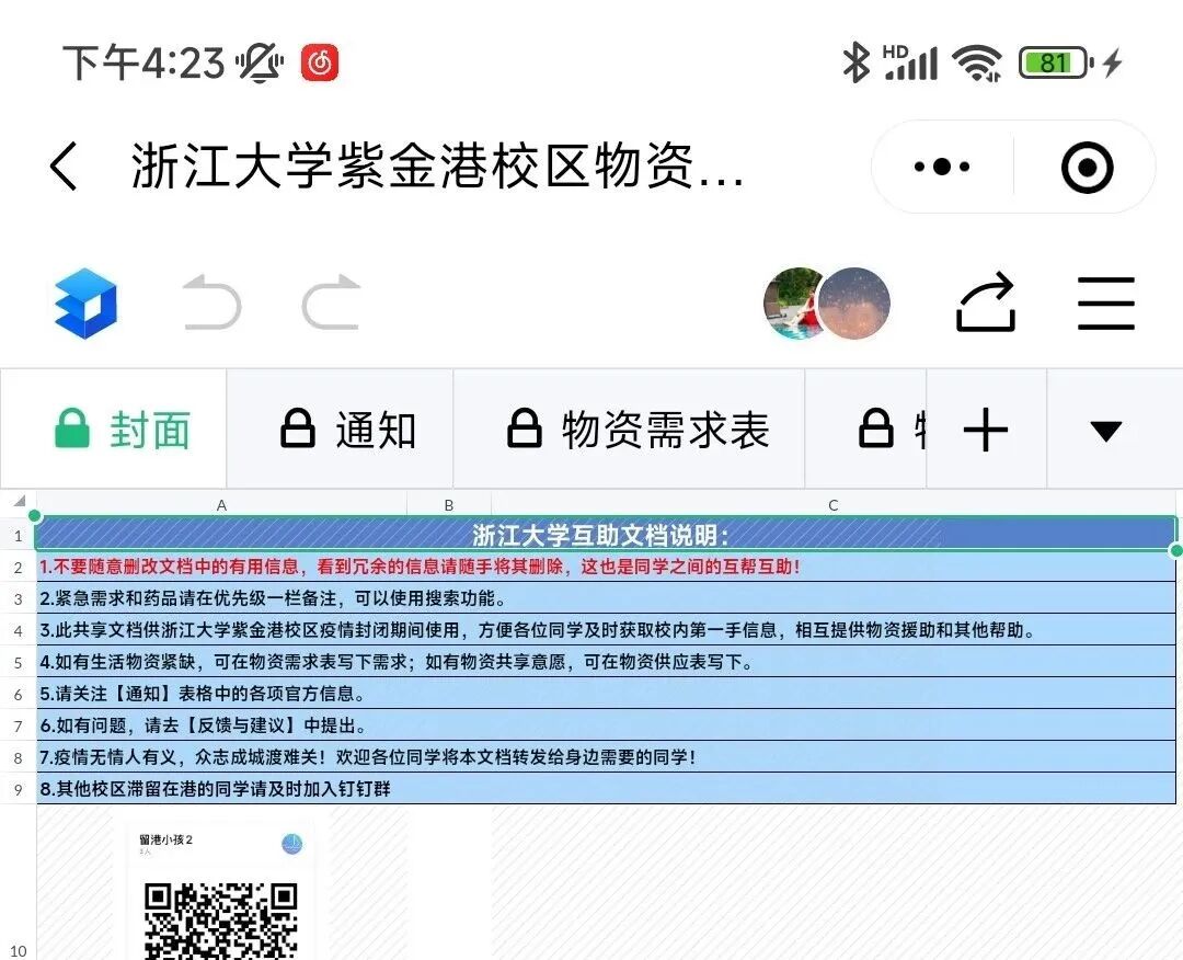 一份“浙江大学紫金港校区物资供需表”共享文档