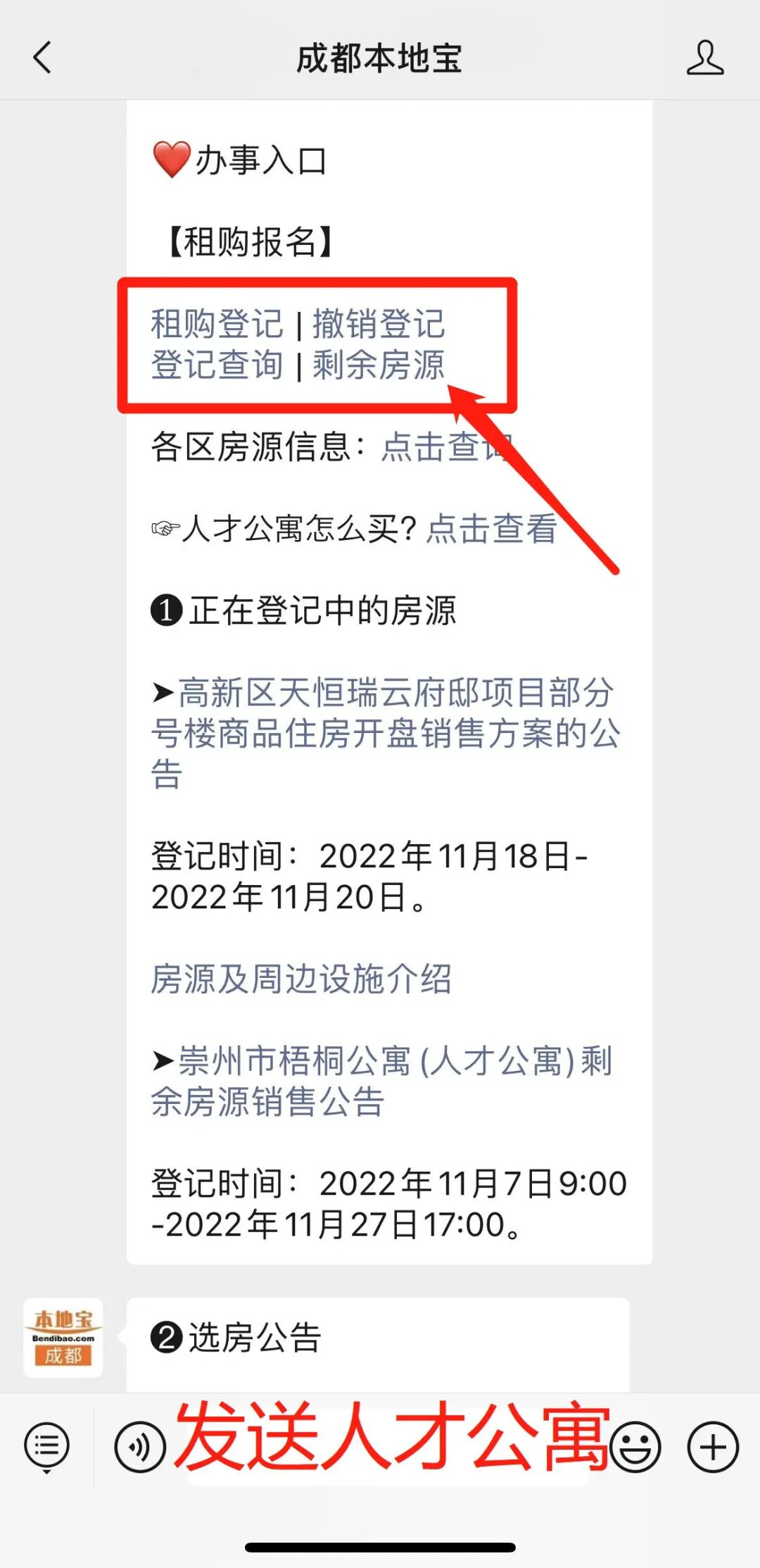 点击下方链接关注【成都本地宝】公众号,在聊天对话框回复【人才公寓】获取成都人才安居资格申请入口、操作流程,人才公寓房源信息、登记入口。