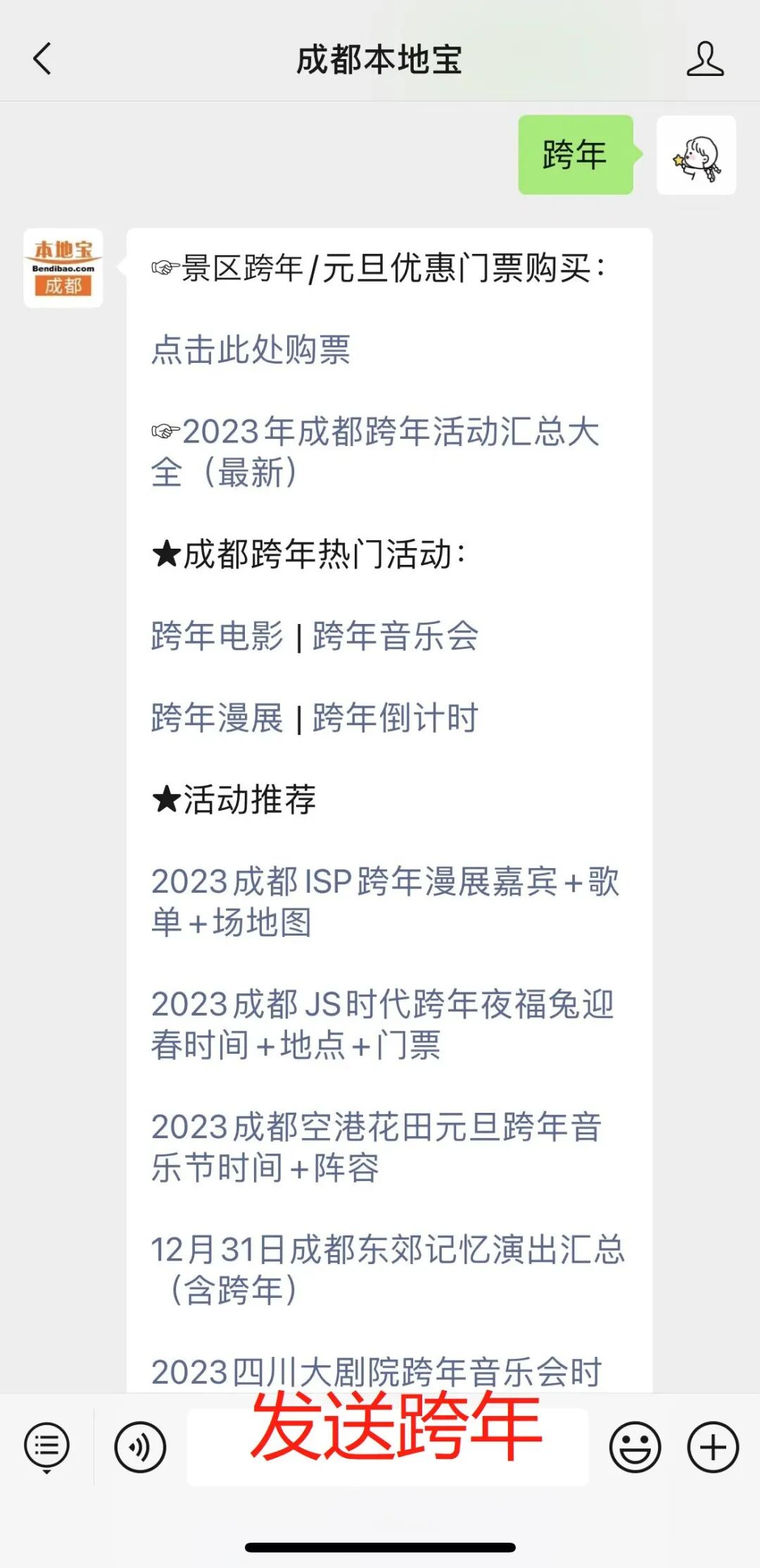 温馨提示:点击下方链接关注【成都本地宝】公众号,在聊天对话框回复【灯光秀】查看活动详情、新年心愿活动报名入口。在聊天对话框回复【跨年】查看成都跨年活动汇总、门票购买入口(持续更新中~)。