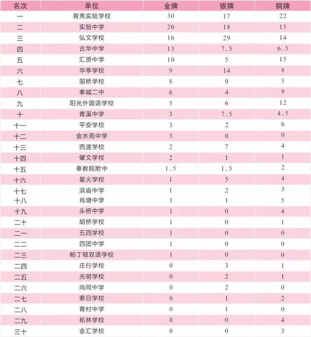 南桥镇、青村镇、经委、文广局、水务局、工业综合开发区、交能集团、上海师大、实验中学、弘文学校、南桥小学、古华小学、邬桥学校、西渡学校、超越体育俱乐部、弘毅青少年体育俱乐部、足球协会、太极拳协会、勇者青少年体育俱乐部、弈海围棋俱乐部、柘林镇、奉浦街道、教育局、卫计委、机管局、杭州湾开发公司、奉发集团、奉贤中学、奉教院附中、古华中学、解放路小学、汇贤中学、平安学校、明德外国语小学