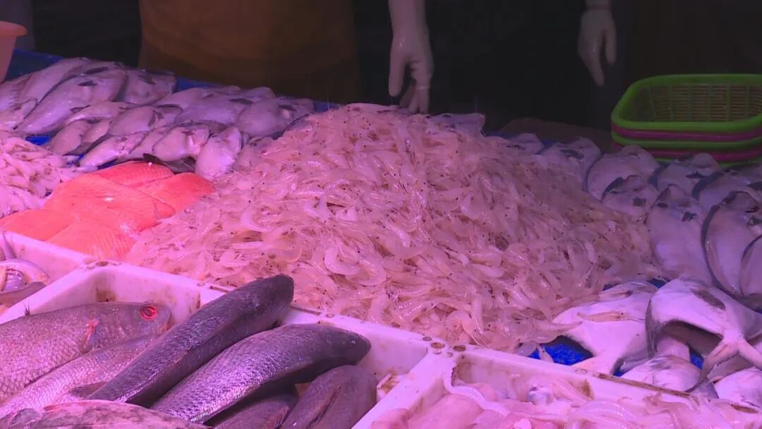 除了虾蟹,各类新鲜鱼类也十分热销,让商家忙个不停。“因为是9月份开捕了,带鱼、鲳鱼、野生小黄鱼这些卖得比较好一点。”经营水产8年的贾女士还向记者推荐了刚放上摊位的海白虾。“这个现在很好吃、很鲜的,买的人也比较多。”