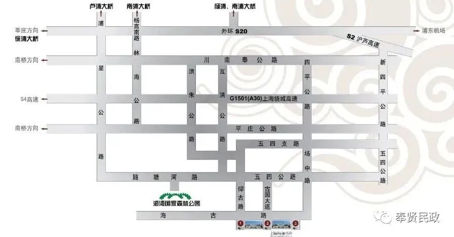 线路2:浦星公路→G1503交环线(浦东机场方向)→瓦洪公路出口→川南奉公路→洪东路→停车场