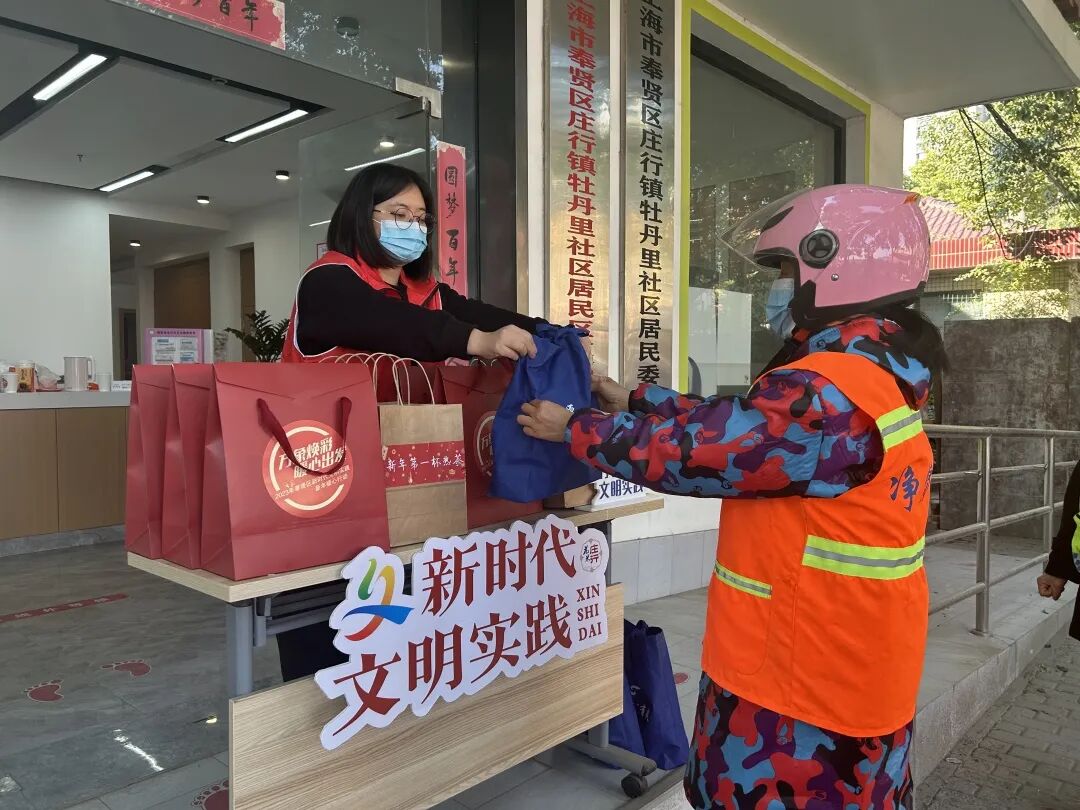 同时,志愿者还为户外职工送上了新年福袋,包括保暖衣裤、消毒用品和防护用品,希望可以为他们的健康保驾护航。