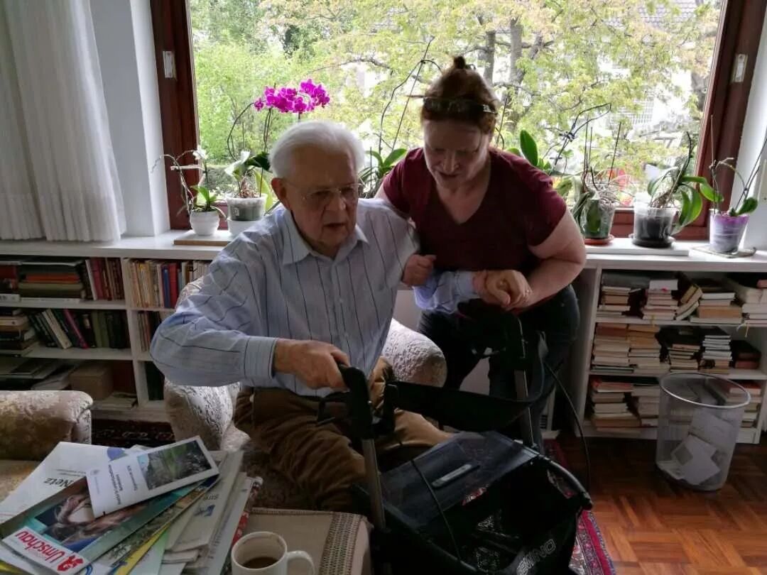 再其次,父亲原属公务员系列,退休后的医药费用70%来自州政府补贴,30%来自医疗保险。此外还有区位补贴,等等。公务员的这种优厚待遇如今广受批评,不过尚未改革。父亲至今仍属高收入群体。原因是,他工作期间先后得到五所大学的邀请,巴登符腾堡州政府为了留住人才,特许他享有相当于本州部长的工资和退休待遇。如今,每月支付消费品和服务后,他已所剩无几,因为他得到的照顾远超平均水平。例如,为了避免护理员换班导致服务质量波动,家里特意安排两位护理员每次交接时都共同工作一天(半地下室有套房)。又例如,每月由护理员陪同去手足养护店修剪一次指甲,每周两次请健身教练上门指导体能训练。此外,还雇用一位保洁员每周来家打扫两次,等等。
