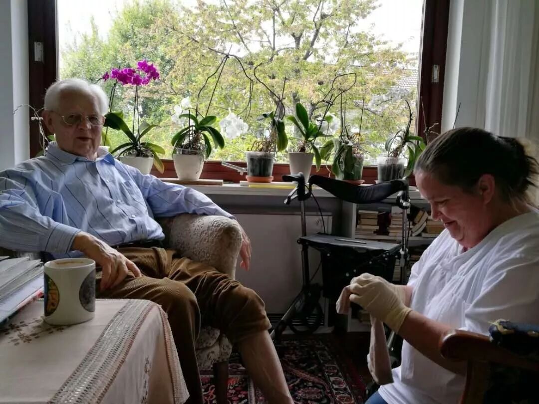 老人自觉健康状况良好,从未申领照护保险金,只是自掏腰包雇用两位小时工。一位每周五做室内清洁并代购食品,服务费100欧元。另一位每周一到周四做午饭并购物,每日大约两个半小时,服务费40欧元。其余时间他生活自理,毫无问题。