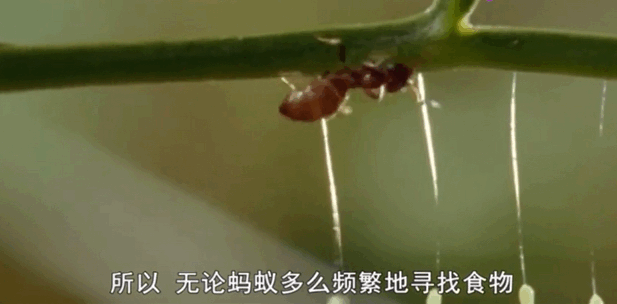 草蛉在产卵时会先分泌胶状物质,然后抬起腹部拉出一根丝,这根丝会很快变硬,再把卵产在丝柄的末端,原理就跟咱们吃拔丝红薯似的。一根丝柄通常与一枚卵相连,也有一些种类的草蛉会用一根丝柄连接多枚卵。这种把卵“举高高”的措施在一定程度上可以避免蚂蚁等昆虫对卵造成威胁。