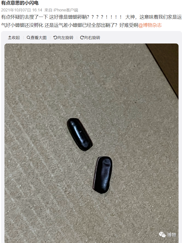 当你在家中发现这个东西的时候,就别捡起来玩儿了,先扼杀在摇篮中比较要紧。不过蟑螂卵的生命力并没有网上传的那么玄乎,它们的卵粒较大,正常踩碎碾碎就不会孵化了,火烤的话直接毁尸灭迹。