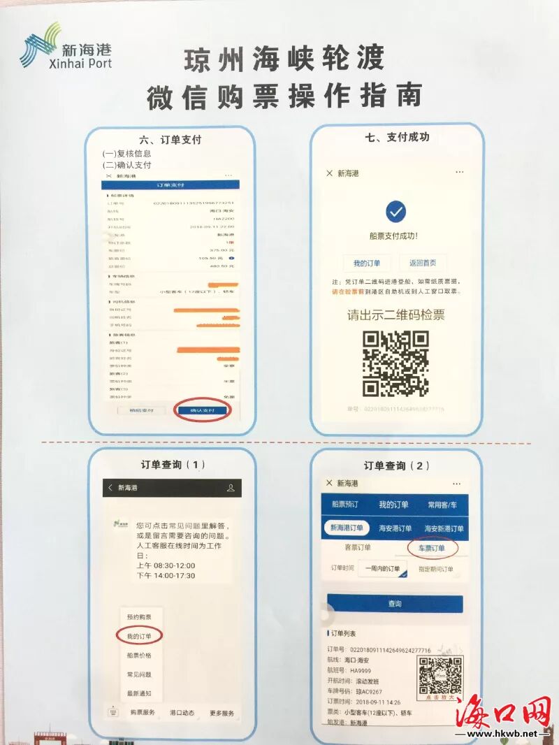 过海司机旅客可通过“新海港微信公众号”“椰城市民云APP”选择已发布的定点航班进行购票,秀英港、新海港现场售票窗口将不再售卖当天车船票。同时琼州海峡轮渡运输联网售票平台也在同步建设中,该平台建成后,司机旅客可通过该平台购买琼州海峡海口至海安的往返船票。