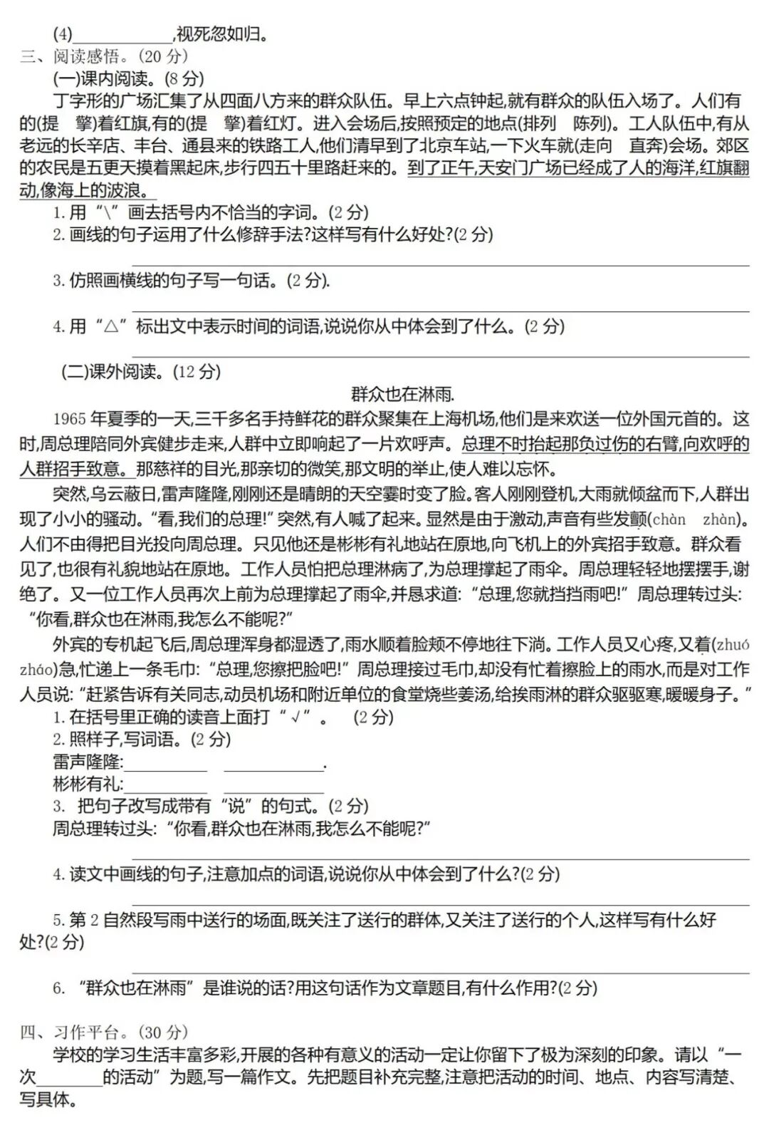 部编1-6年级语文(上册)课内、课外阅读训练