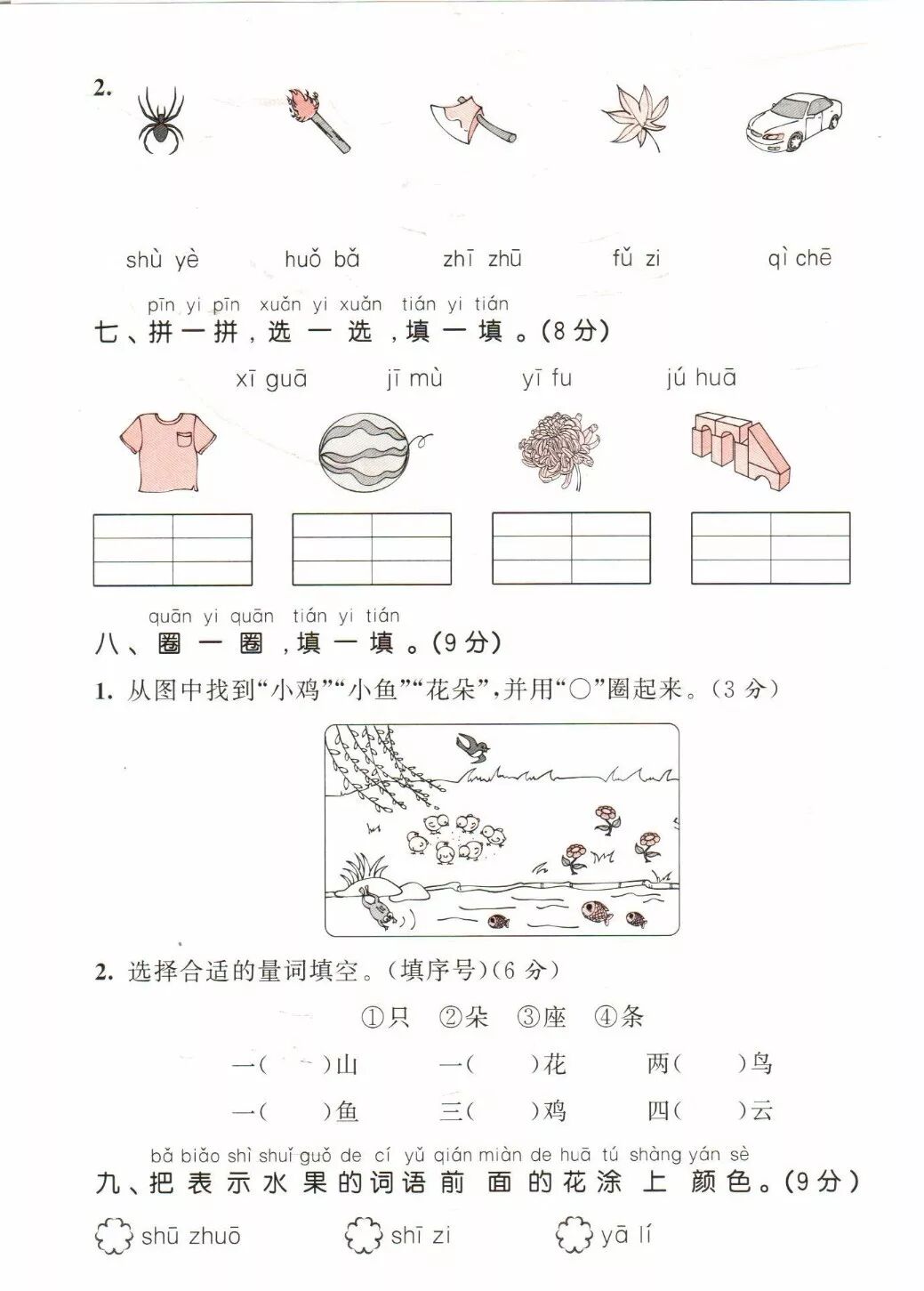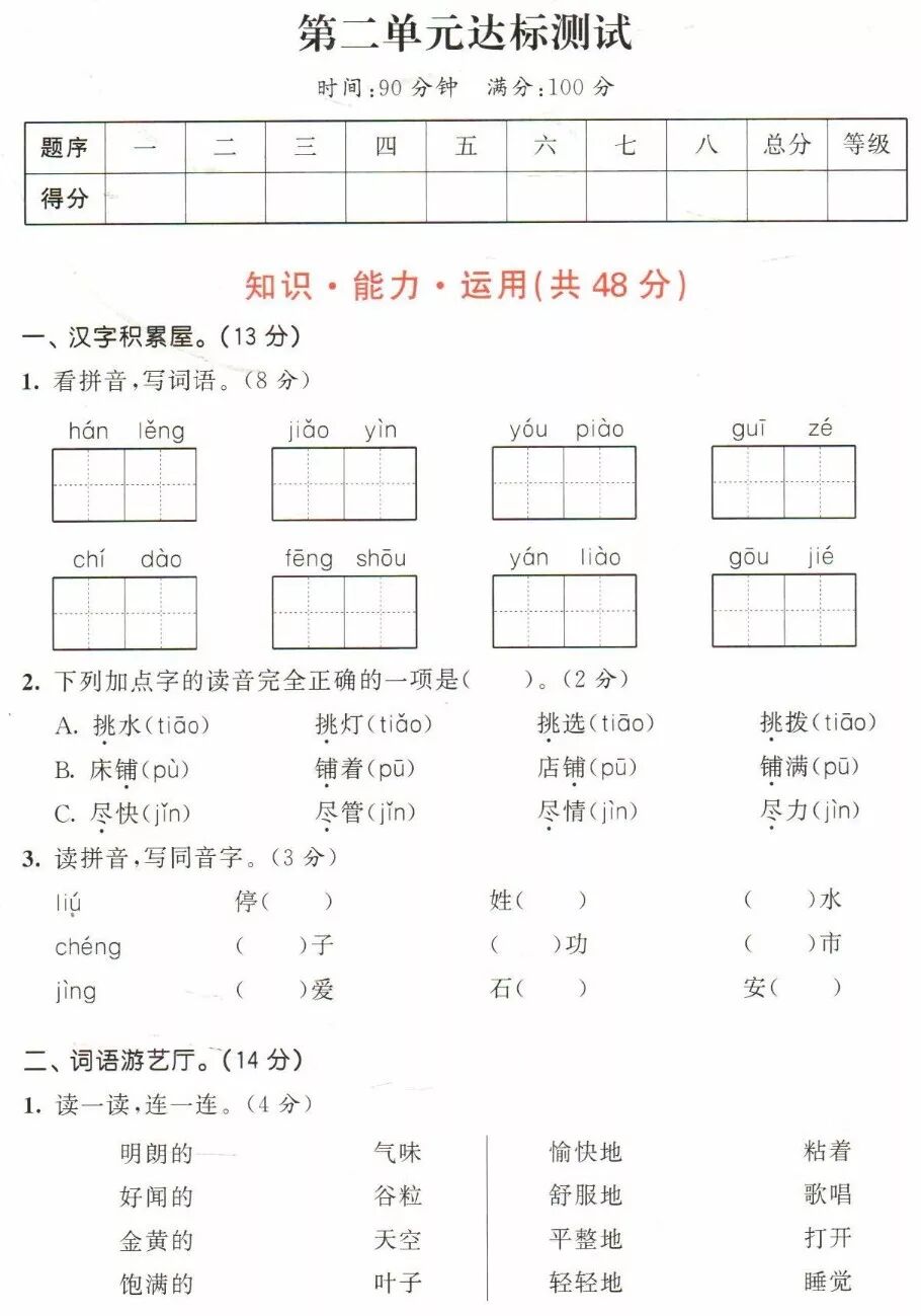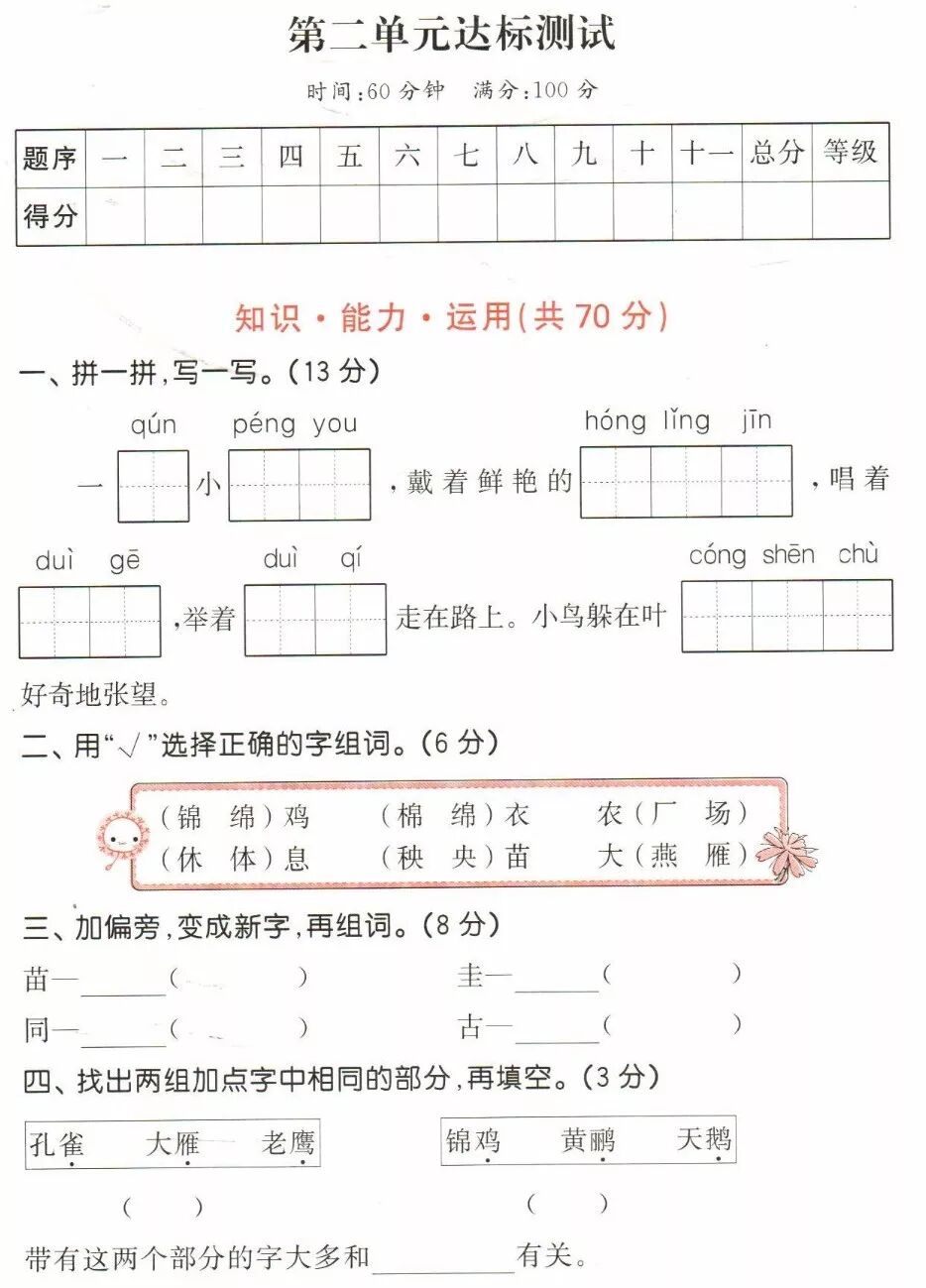 2019部编1-6年级语文(上册)《写字表》看拼音写生字