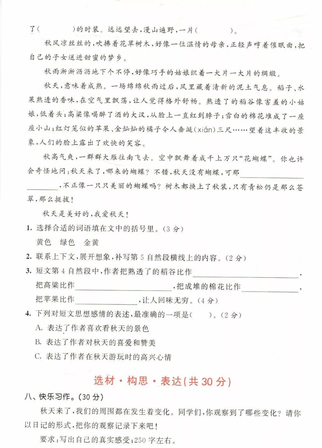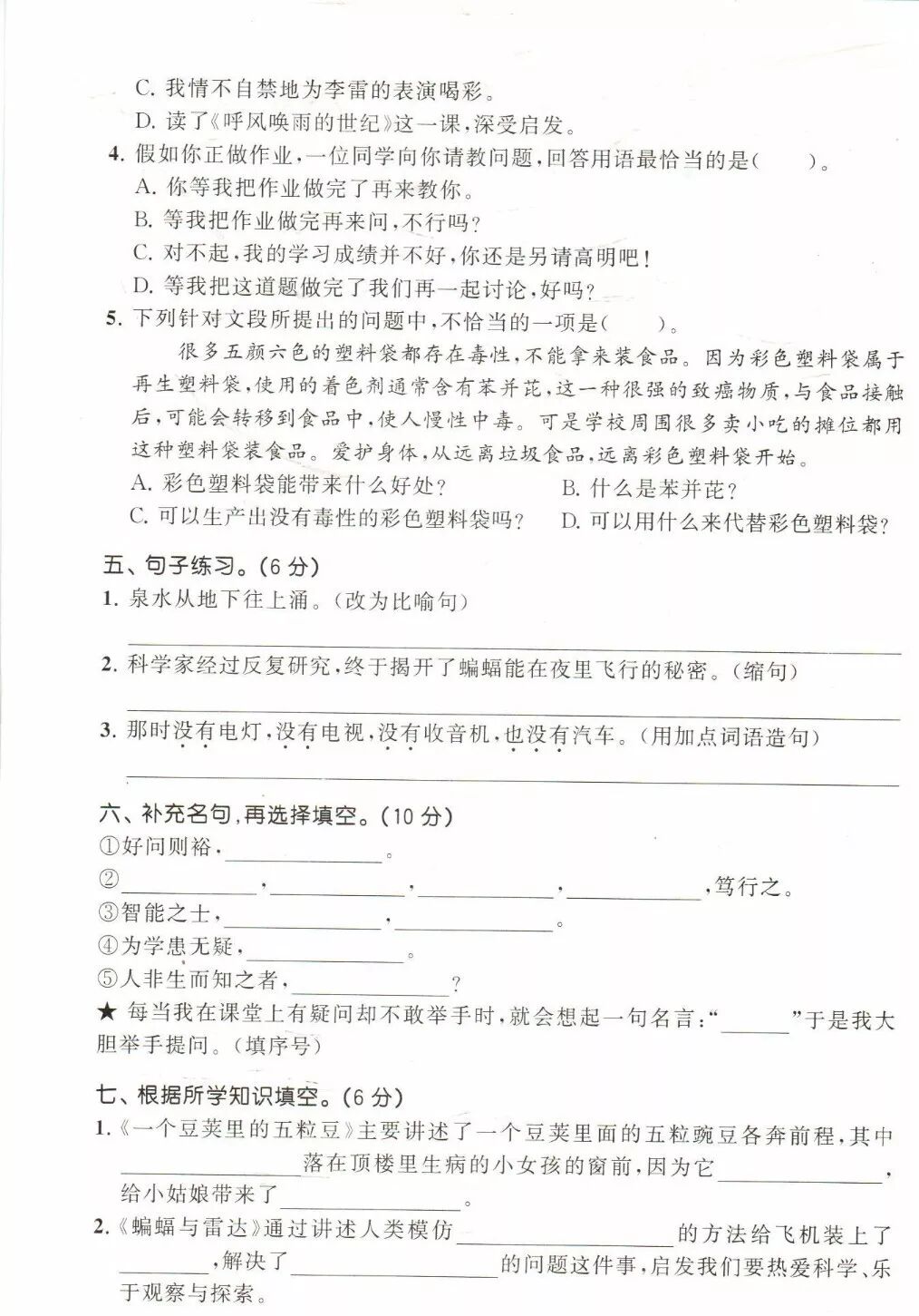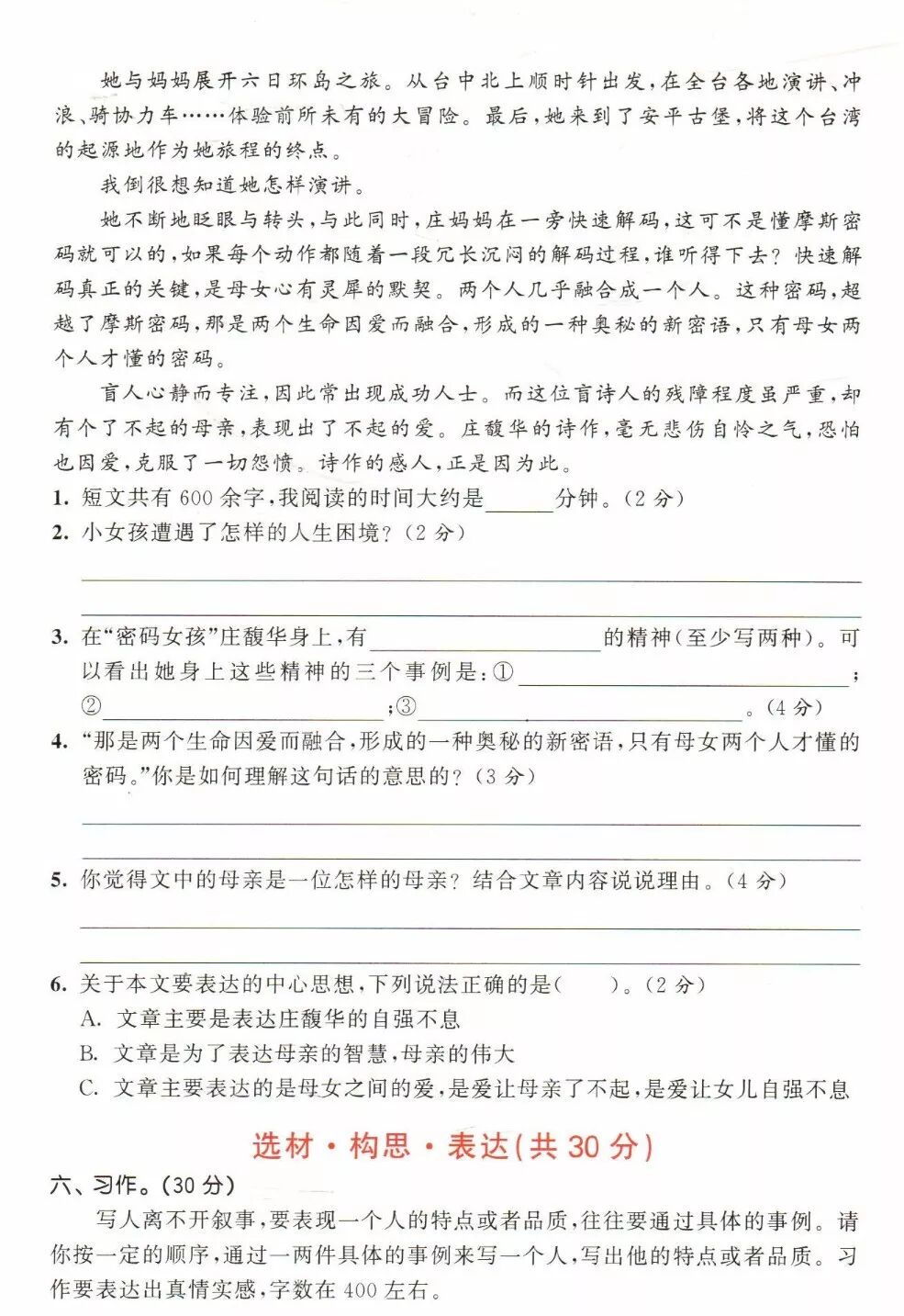 部编1-6年级语文(上册)精选课外阅读+答案,暑假练练!