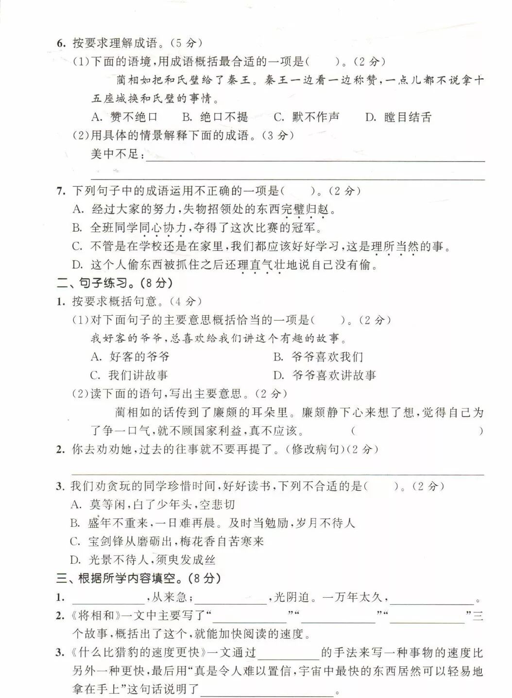 最新部编1-6年级语文(上)一课一练下载