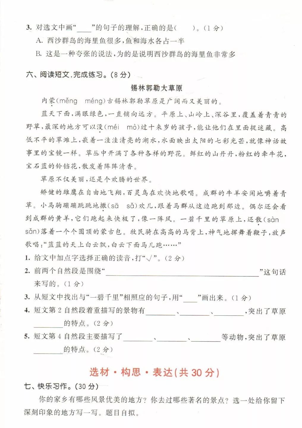今天这份试卷打印提示:无需下载。直接保存图片,再打印图片,很方便。试卷均附有详细参考答案,做完即可批改校对,对孩子的期中阶段复习一定会有帮助。