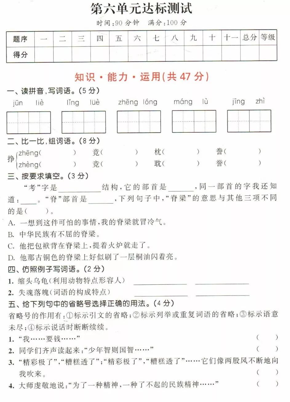 【2019语文(上册)单元知识汇总区】