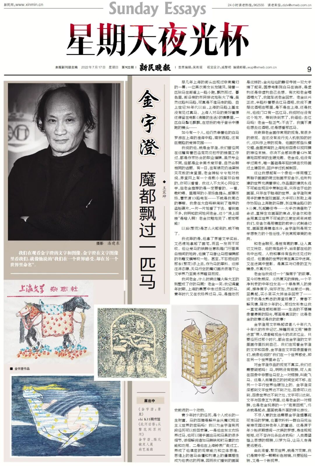 老金记得在他童年时期,上海的晨雾中走过卖马奶的马,青年时代他又在农场养过马。都说青少年时代的经历是一个人成长的财富。马的图腾,是解开金宇澄魔幻现实主义世界的密码吗?