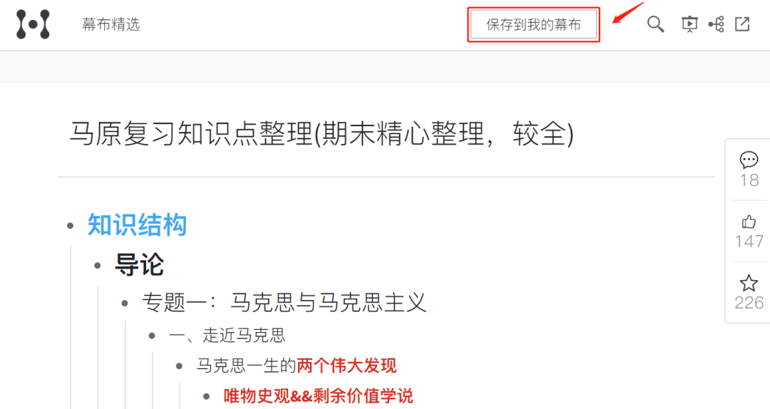 看到自己喜欢的作品,直接点击文档右上角的「保存到我的幕布」,即可为我所有,任意编辑!