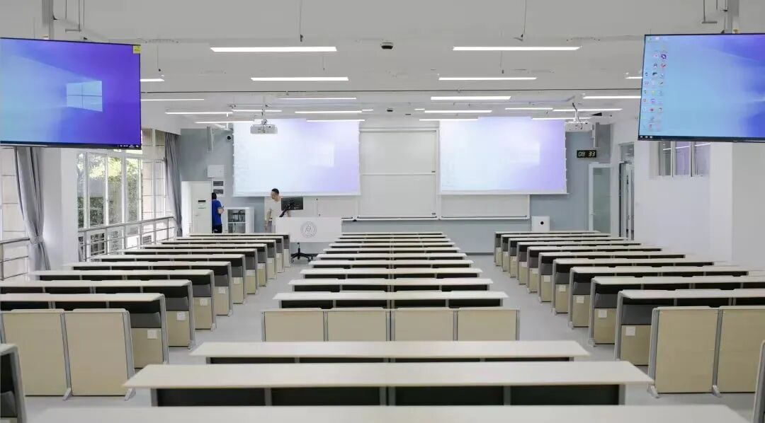在改造后的大型阶梯教室里,除了讲台后已有的大屏幕,学校在教室后排也新增了2块显示器,让后排的学生也能看到屏幕上的教学内容,扫除视野盲区。在教室的每个座位下,还新增了插座,便于学生使用电脑、平板等电子设备。“新教室非常好!”2022级中美专业陈思铭说道,“我的专业课程经常要使用电脑,新增的座位插座让我的学习更为便利。”