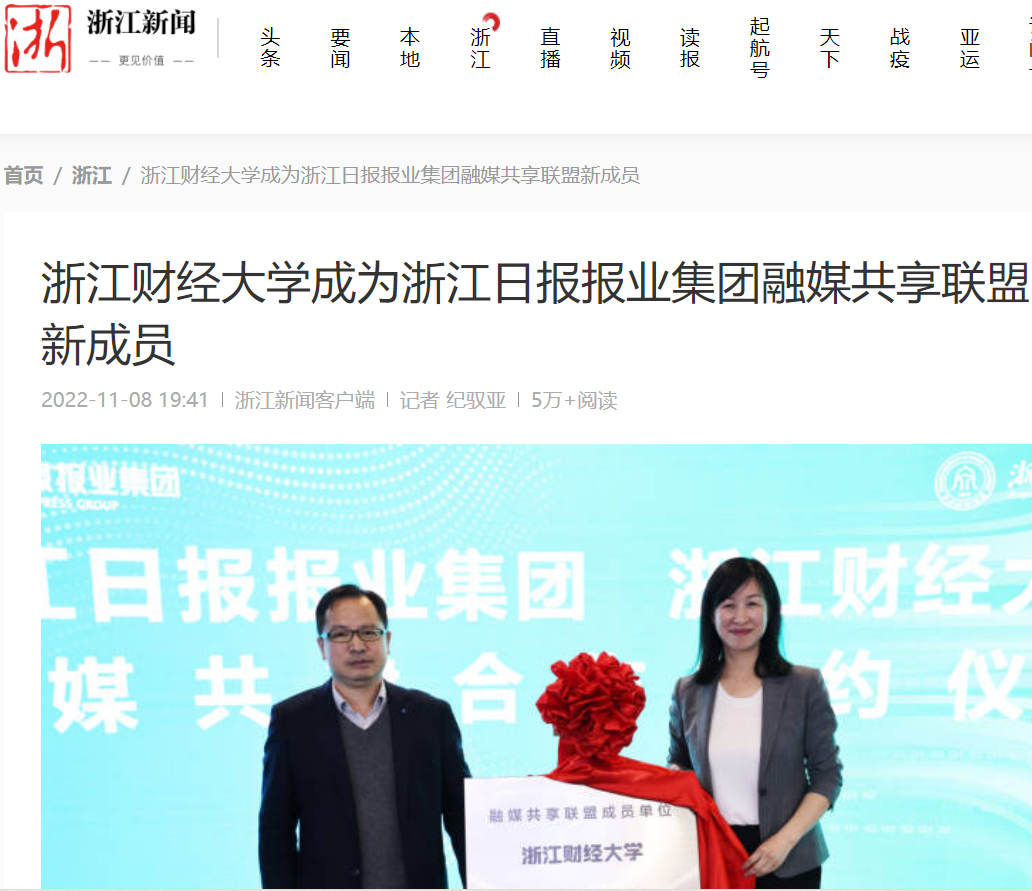 浙江财经大学成为浙江日报报业集团融媒共享联盟新成员