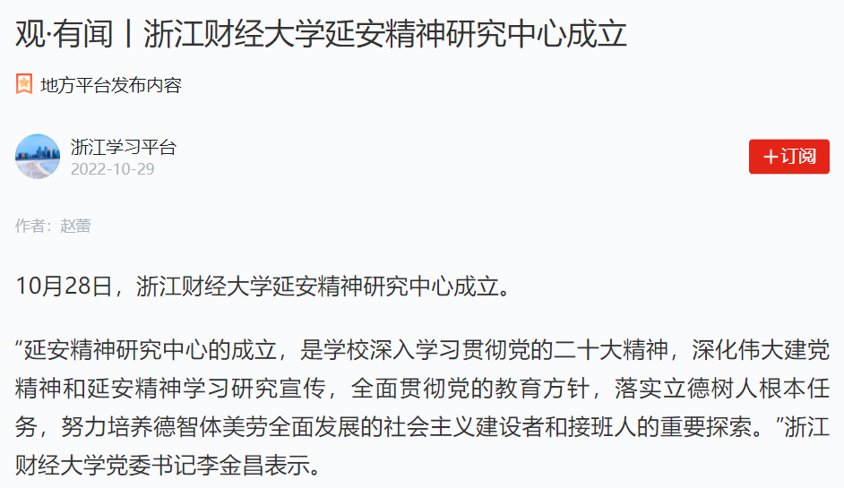 观·有闻丨浙江财经大学延安精神研究中心成立
