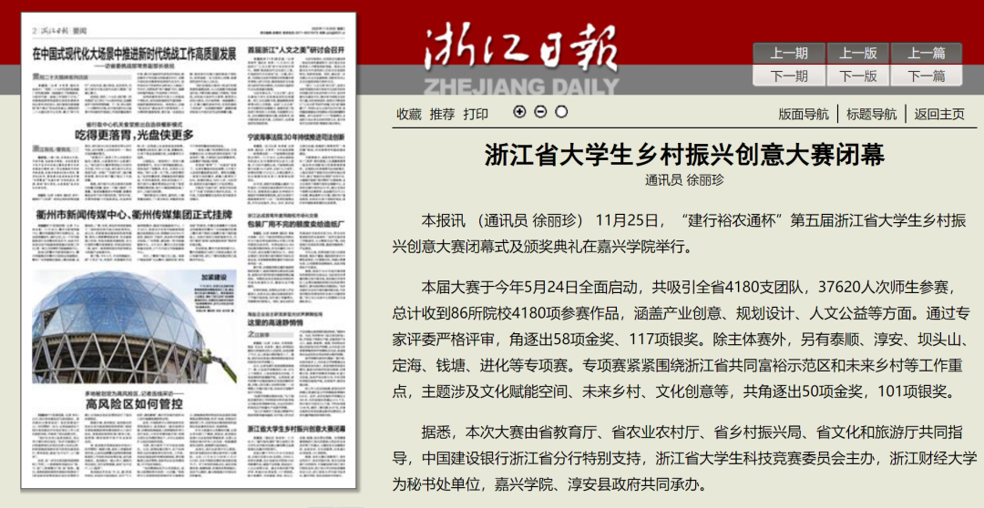 “建行裕农通杯”第五届浙江省大学生乡村振兴创意大赛闭幕