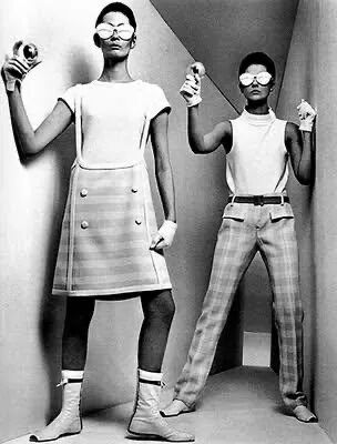 二是色彩的运用,作为极简美学的一种,纯净的白色、黑色作为常见色经常出现在当时未来主义风格的服饰上,此外最具太空美学代表性的的金属银色,也是设计师们最为偏爱的颜色。