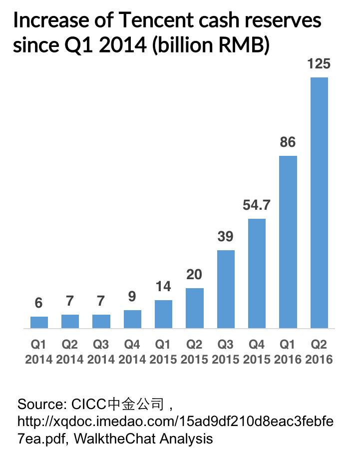 Another indicator is the reserves that Tencent (as a payment processor) has to justify to the Chinese government. These reserves have been growing exponentially since Q1 2014, suggesting that WeChat Pay is experiencing a correlated growth.