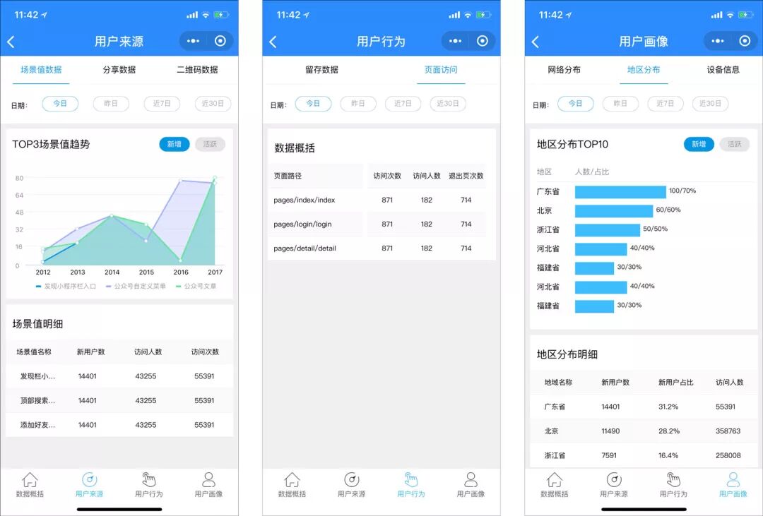 Alading enables mini-programs to gain insights about their mini-program's engagement: user data, sharing behavior and most popular pages/bounce rates.