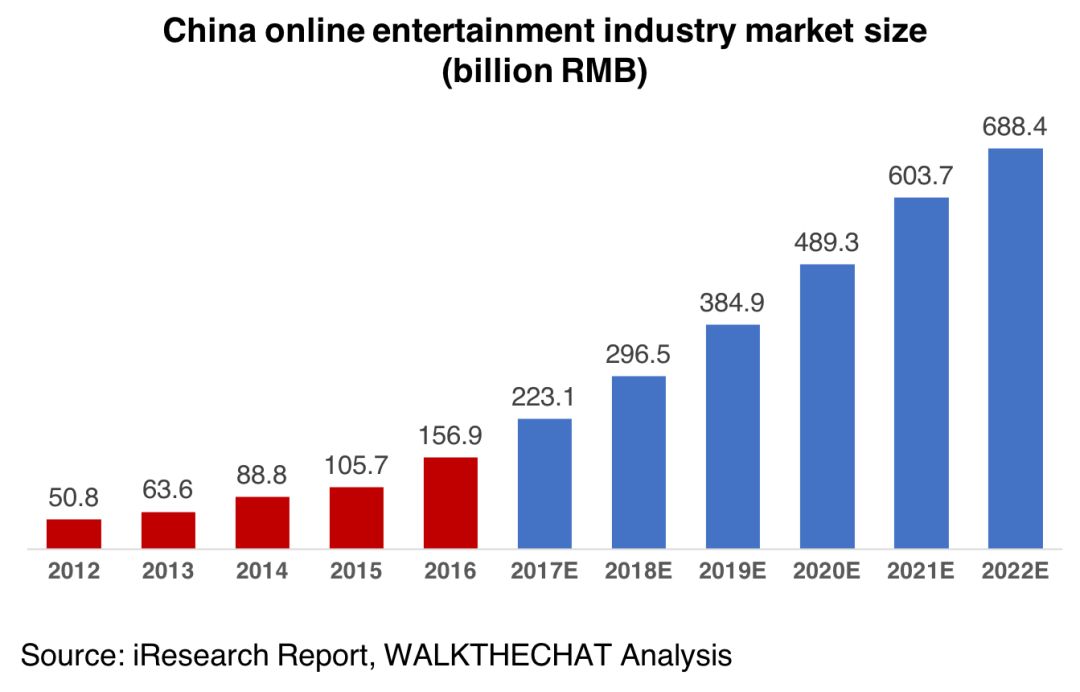 iQiyi is, first of all, riding the wave of a growing market. The China online entertainment market is expected to grow at a steady 27% YOY growth rate from 2017 to 2022.