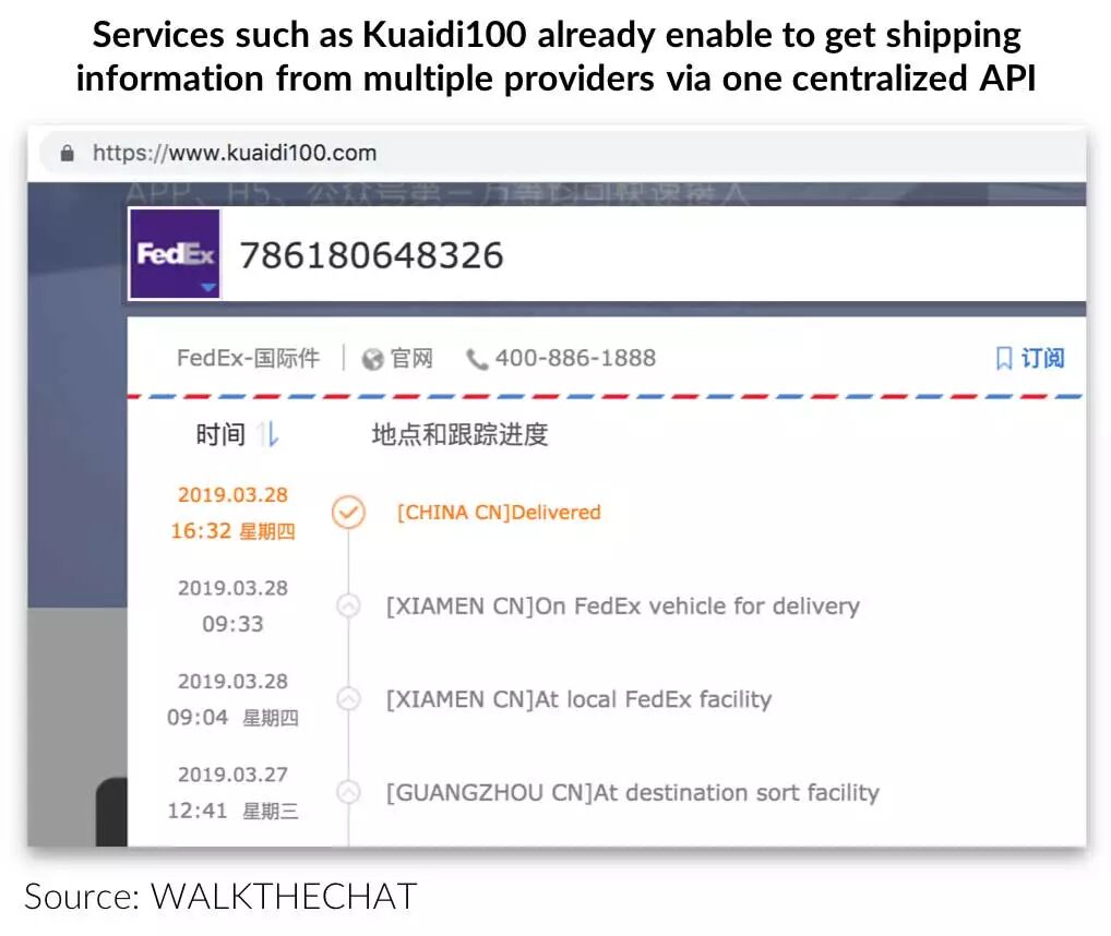 This is problematic as, of course, most vendors don't use WeChat Mini-programs as their only channel. They will be interested in using one single shipping API across their channels (and as we mentioned, there are already API's in the market offering this service)