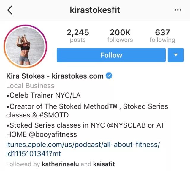 Kira Stokes是又一位明星级健身教练,她提出Stoked Method健身理念,并在纽约提供“Stoked Series Classes”、一对一私教以及网上“Booya Fitness”等健身课程。