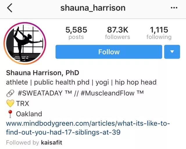 Shauna Harrison是一位瑜伽和跑步狂热者,同时还是公共健康学博士。目前,Shuana在西海岸湾区教授健身课程,并与TRX®悬挂训练系统有合作关系,因此你可以搜到她很多TRX瑜伽训练的短视频。(如下图第三行第二张图片)